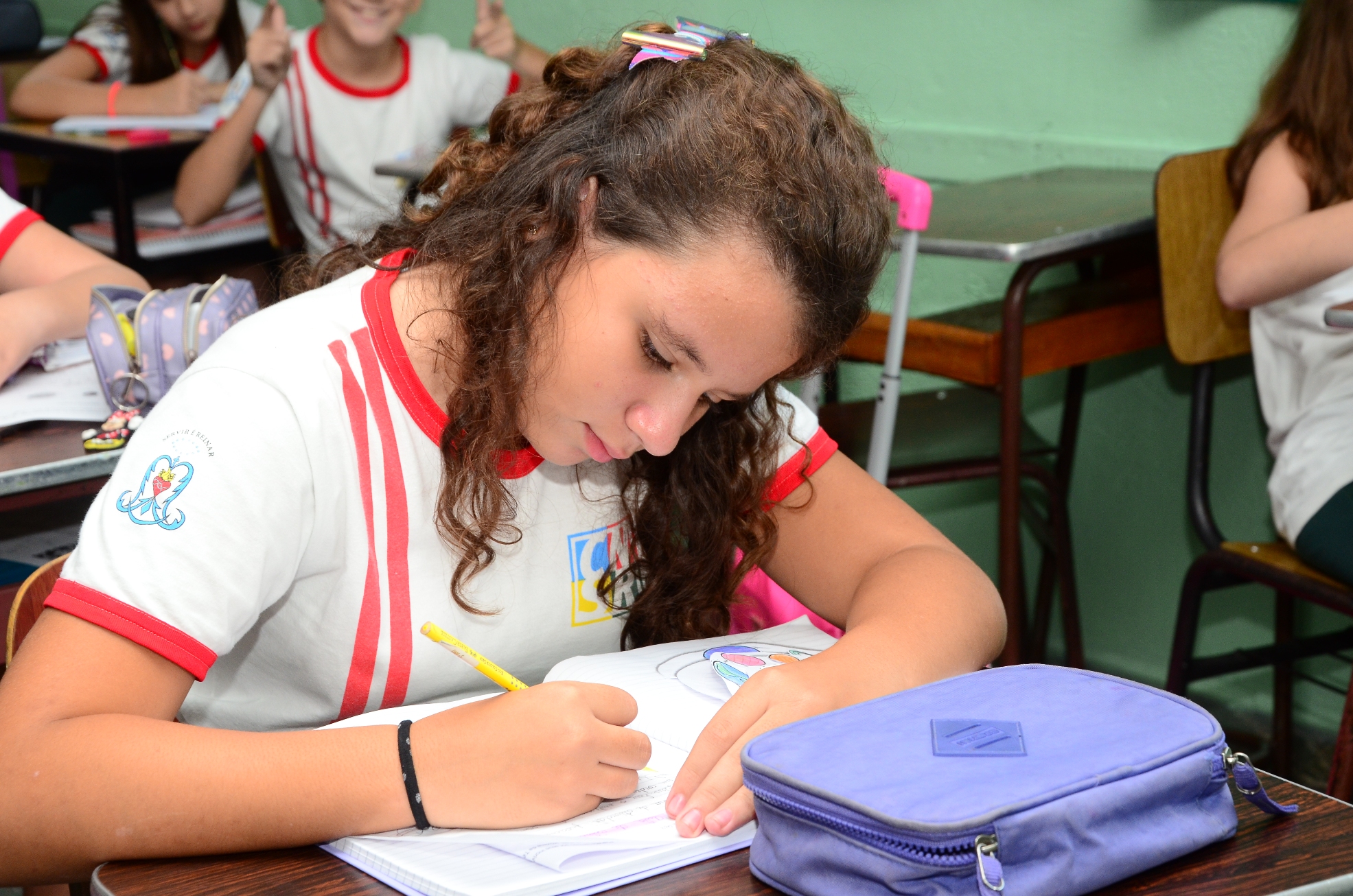 Os trabalhos em equipes, desenvolvidos em sala e sob a supervisão das professoras, colaboram para a formação dos princípios básicos da boa convivência e do relacionamento harmonioso com as diferenças.
